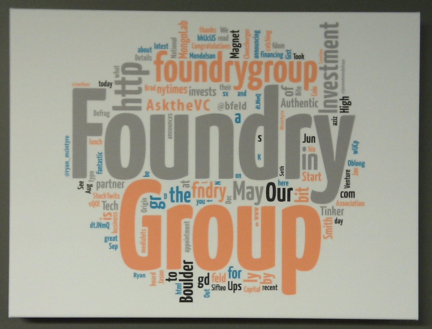 . She had some comments relevant to her business and offered to put together a Twitter word cloud print for @FoundryGroup