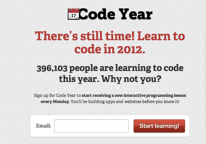 called Code Year. It promised to teach you how to code in 2012. I signed up right away and am now one of 396,103 people who have signed up as of this moment.