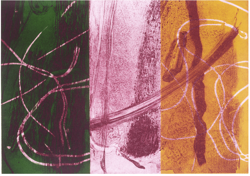 Amy and I have a bunch of my mom’s art. If you’ve been in my office or to my house, you’ve seen some of it. She works in a bunch of different mediums – the one above is a collage, the one below is a solar plate print.