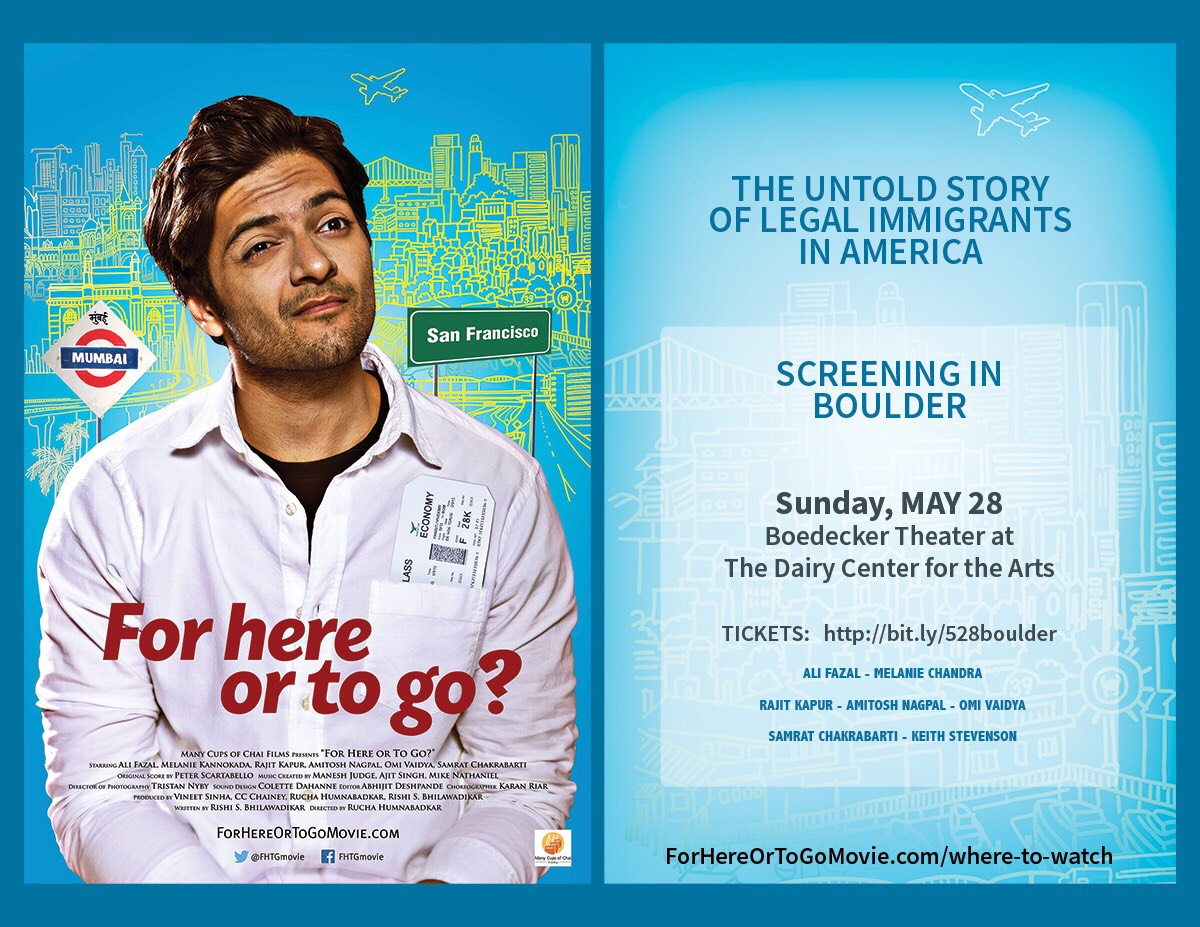 Amy and I are executive producers of the movie “For Here or To Go?” We’ve decided to fund the screening of it in Boulder. It will be showing at