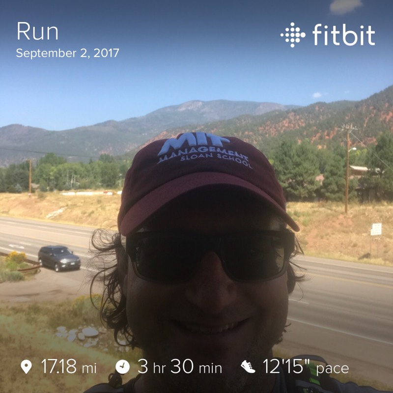 A three and a half hour run gives my brain plenty of roaming around time. I like to run naked (no headphones, no music) so the thoughts just drift around. My friend Matt Bencke was in my head a lot on this run . Houston and Hurricane Harvey floated around. The red mountains that I was surrounded by frequently caught my attention. I said hello to a bunch of cyclists and a few horses. Random company stuff made its way to the surface. I noticed lots of crawling bugs and scurrying animals. A bunch of jets flew overhead delivering people to Aspen for the weekend. I thought of Amy a lot.
