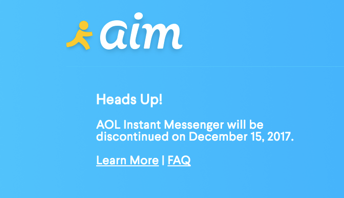 Among all the distressing news of the world, I heard today that AOL Instant Messenger is shutting down on 12/15/17 .