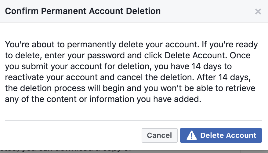 Yup. I’m done with Facebook. However, it’s tough to delete your account. Read the message above. I exited out of this screen, suspended my account instead, but then went back 15 minutes later and actually deleted it. Well – I started the deletion process. I don’t know what day I’m on, but I think I’m close to 14 days. So, I’m still “deleting” apparently.