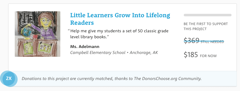 Today, DonorsChoose has a match across the entire site for any donations for books . It’s DonorsChoose Book Match Day. How cool is that?