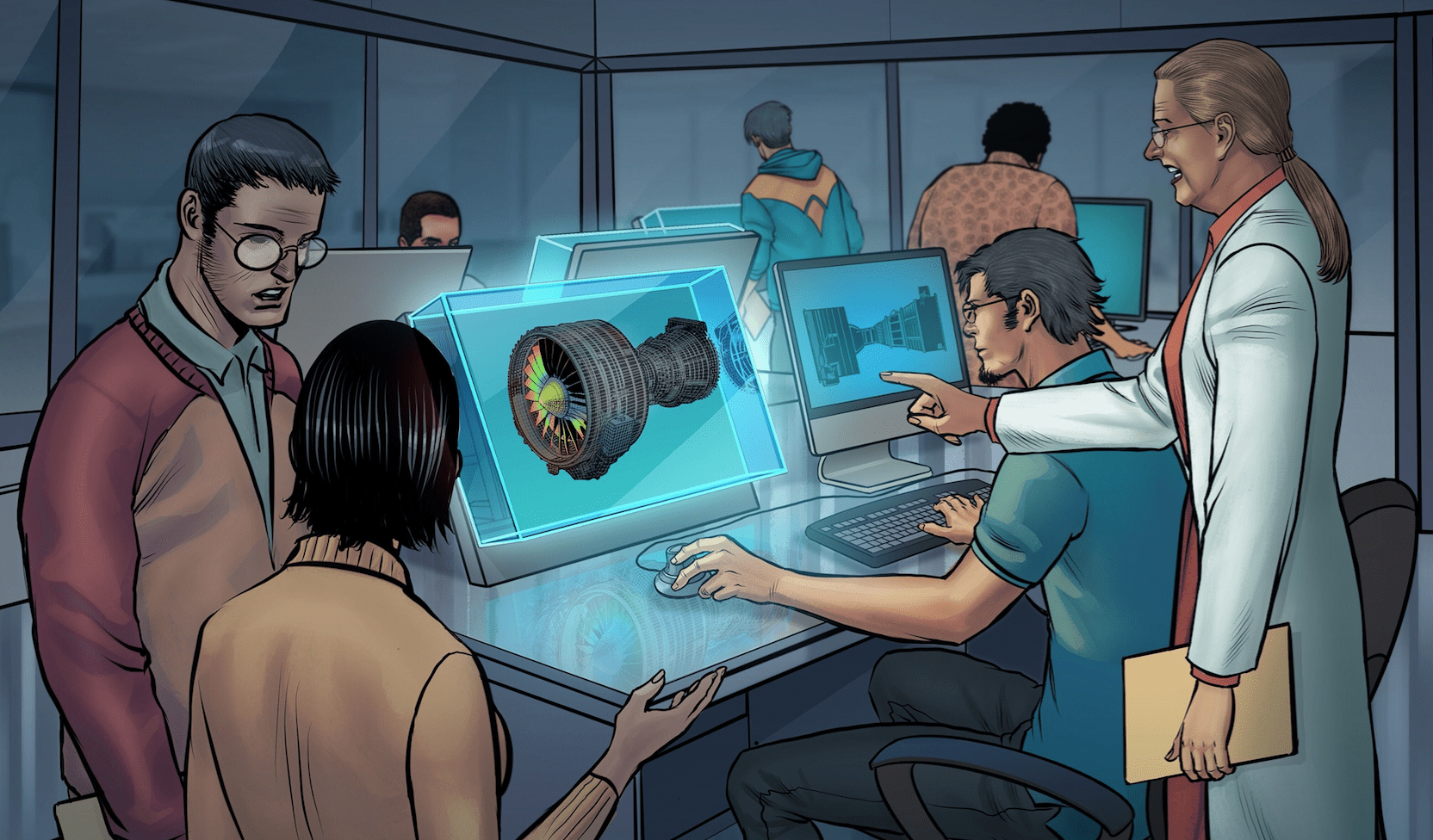 And in scenarios where groups of engineers need to review three-dimensional simulations of phenomenon like the mechanical stresses in to-be-printed parts and complex biological systems in the Looking Glass Pro as if they were viewing the real thing.