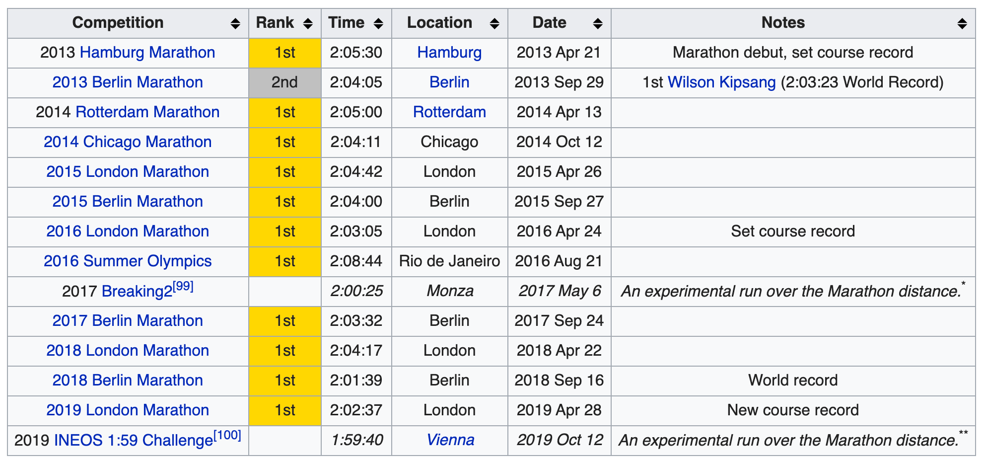 If you are a marathoner or a fan of the marathon, you likely know how amazing Kipchoge is . If you don’t, following is his marathon performance history.