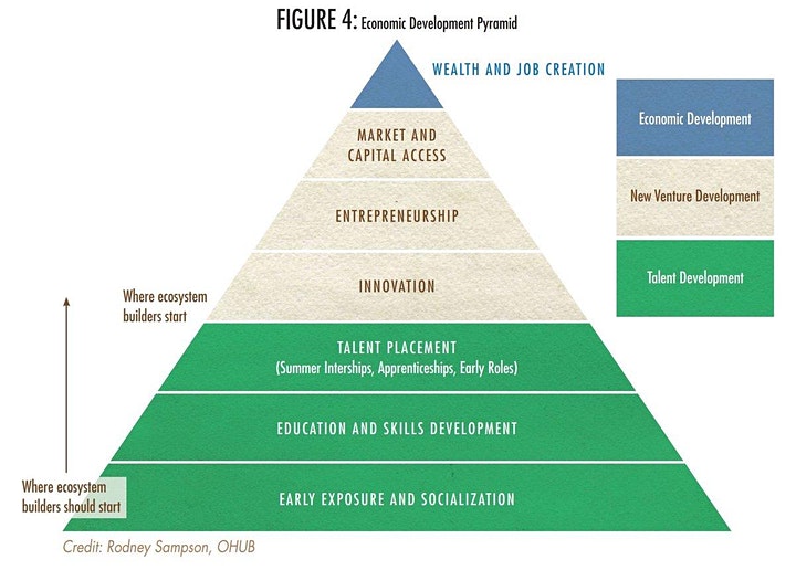Rodney is one of the dozen or so Black colleagues that I reached out to and talked to over the last two weeks to learn more about what I could get involved in and immediately support with time and money. Ohub is one of those organizations and I’ve already learned a lot from Rodney, such as several different ways to think about changing the equation around racial inequity in tech. A framework I got from him that I immediately related to is his Economic Development Pyramid.
