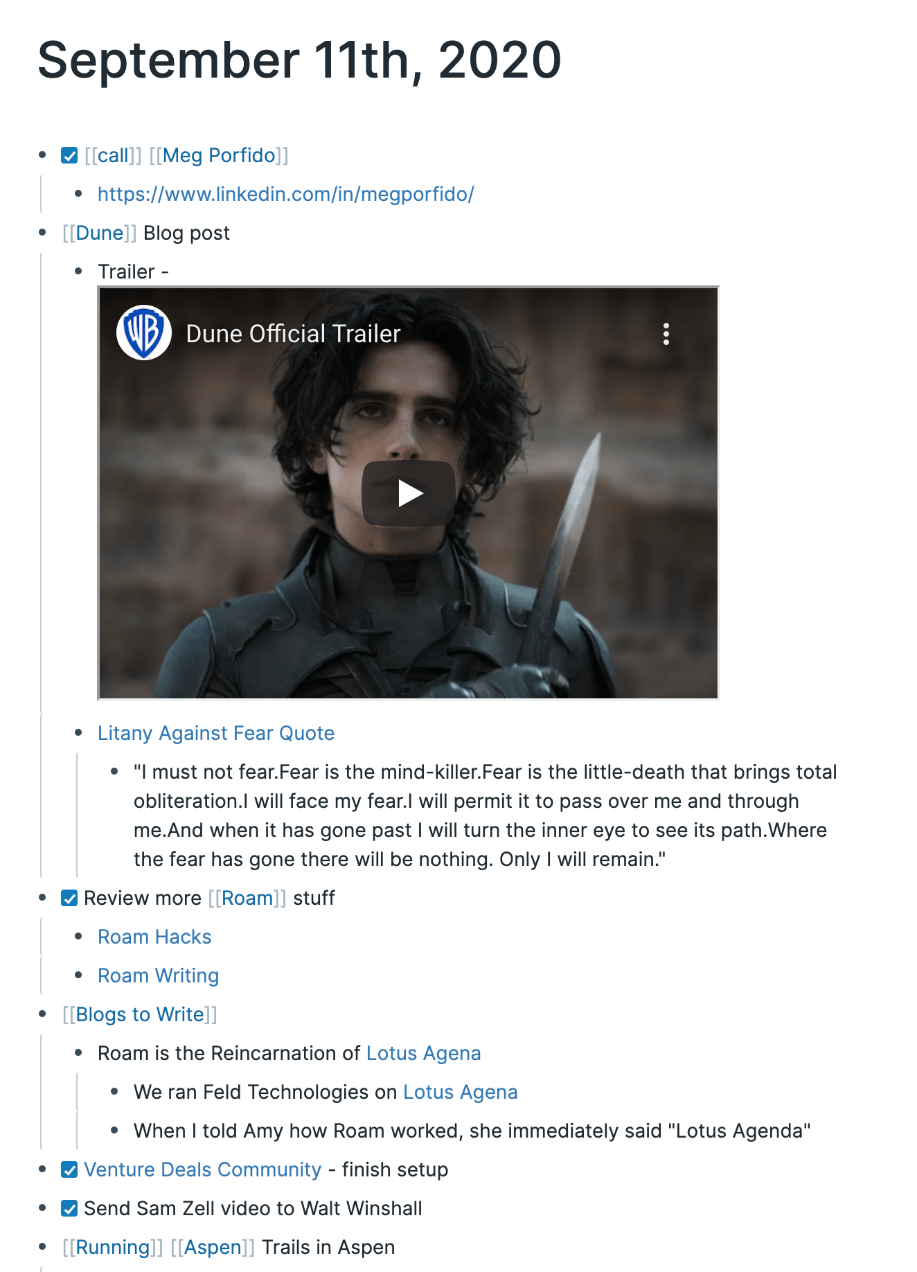 Agenda is the only product that augmented my brain and how I think until I started using Roam on 9/11/20.