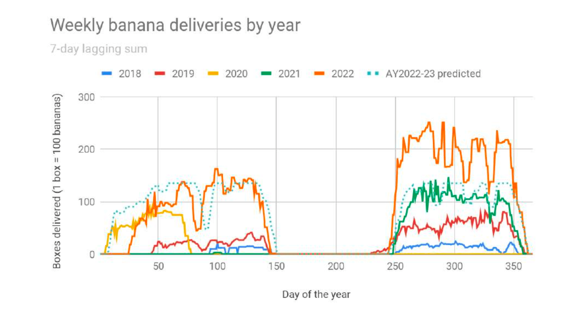 - Bananas: 299,460 at 97.8% reliability and 0.53% waste